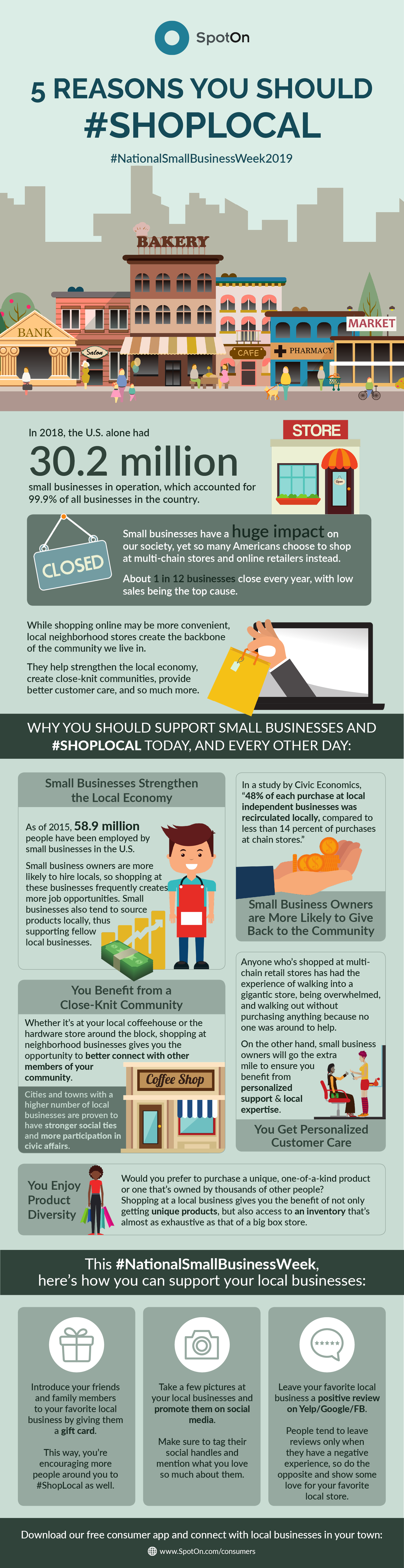 In 2019, there were 30.7 million small businesses in operation in the United States, accounting for 99.9% of all businesses in the country. Small businesses have a huge impact on our society, yet so many Americans choose to shop at multi-chain stores and online retailers instead. About 1 in 12 businesses close every year, with low sales being the top cause.