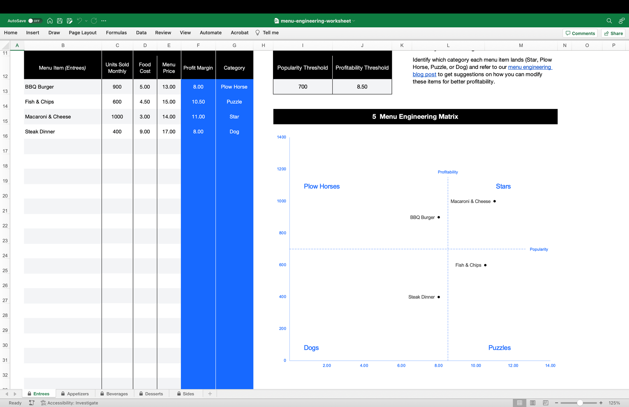Menu engineering worksheet